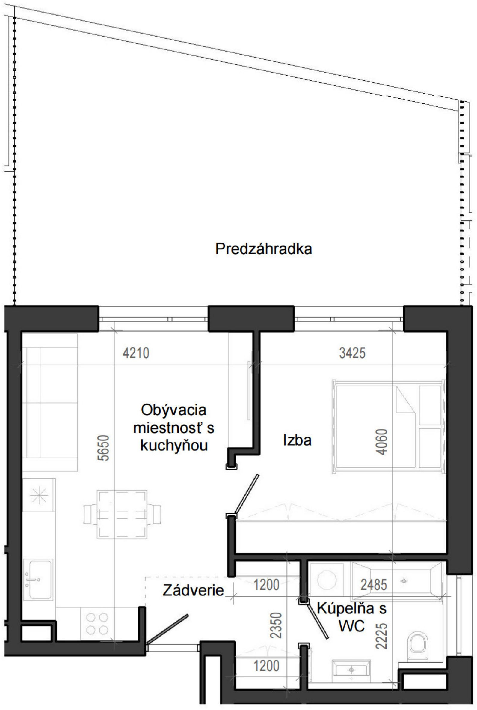 0 izbový byt B14 - 1F-OP